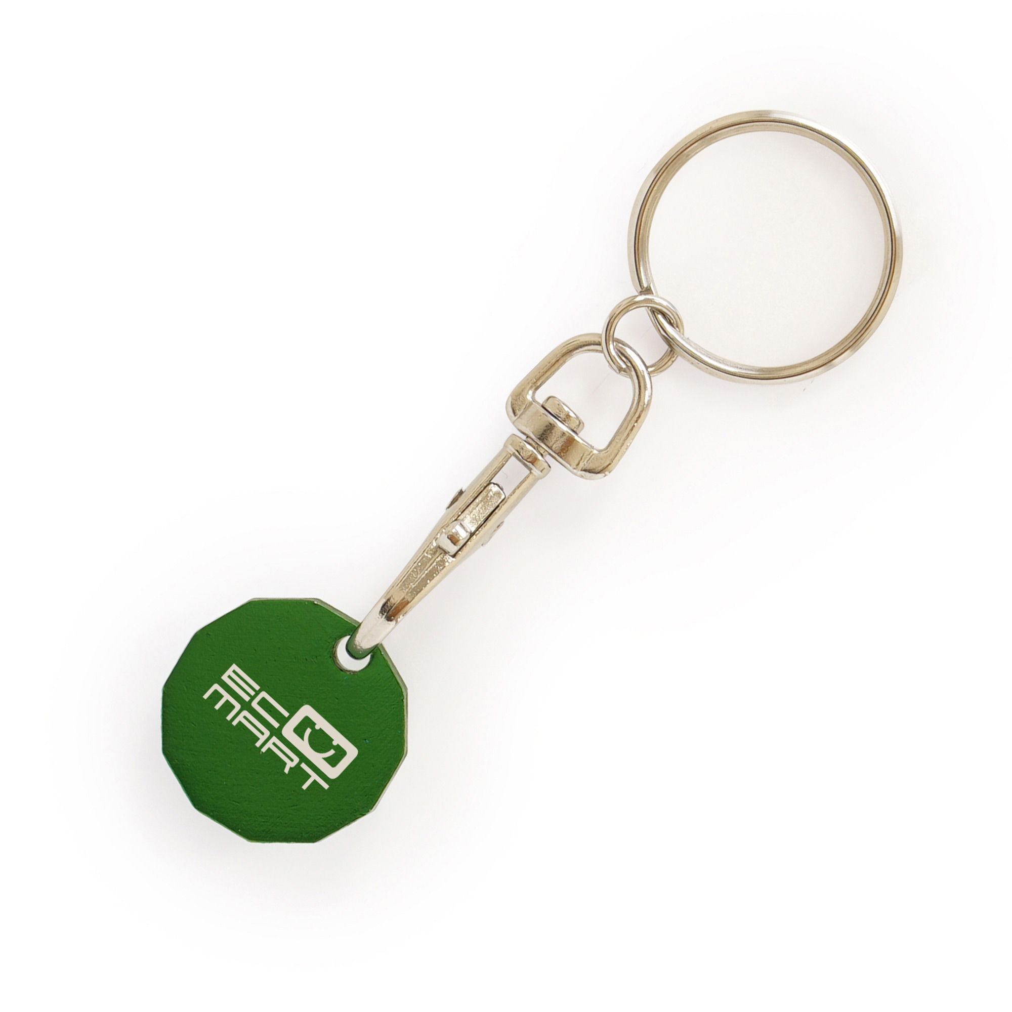 | ZT0102GN | GREEN aluminium 12-sided #GBP trolley coin on trigger clip + split ring | 427 |