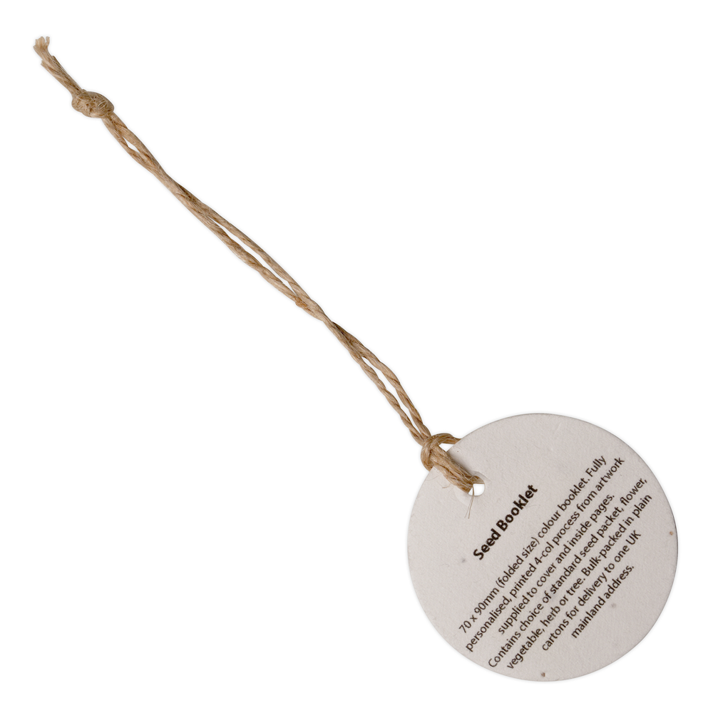 A lightweight (approx. 140gsm) seed paper Swing Tag manufactured with natural, biodegradable cotton fibres with Natural Jute Twine. Including wildflower and grass seeds for a distinctive, nature-inspired finish. The tag comes with jute string making it a perfect and convenient marketing tool for businesses looking to personalise product information, display logos, or add a thoughtful touch to gifts, the tags are sure to make a lasting impression. This tag is an ideal promotional tool for marketing campaigns, events, or tradeshows. Order yours today!